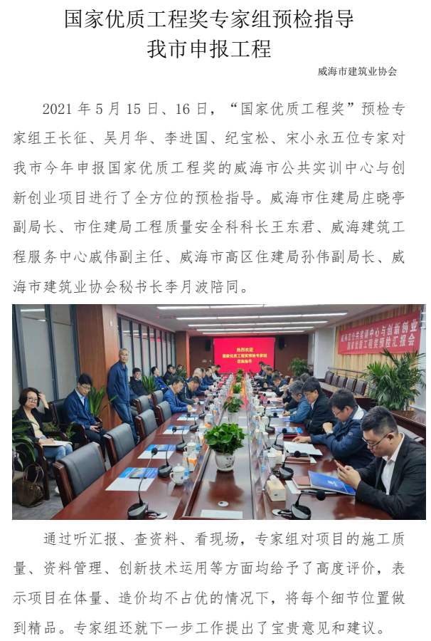 >國(guó)家優(yōu)質(zhì)工程獎(jiǎng)專家組預(yù)檢指導(dǎo) 我市申報(bào)工程