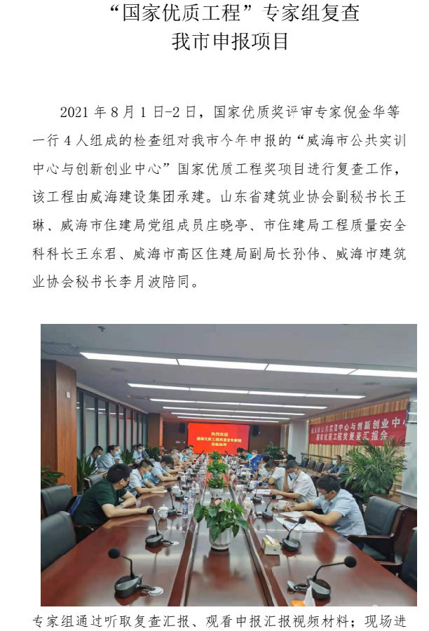 >“國家優(yōu)質(zhì)工程”專家組復(fù)查 我市申報項目