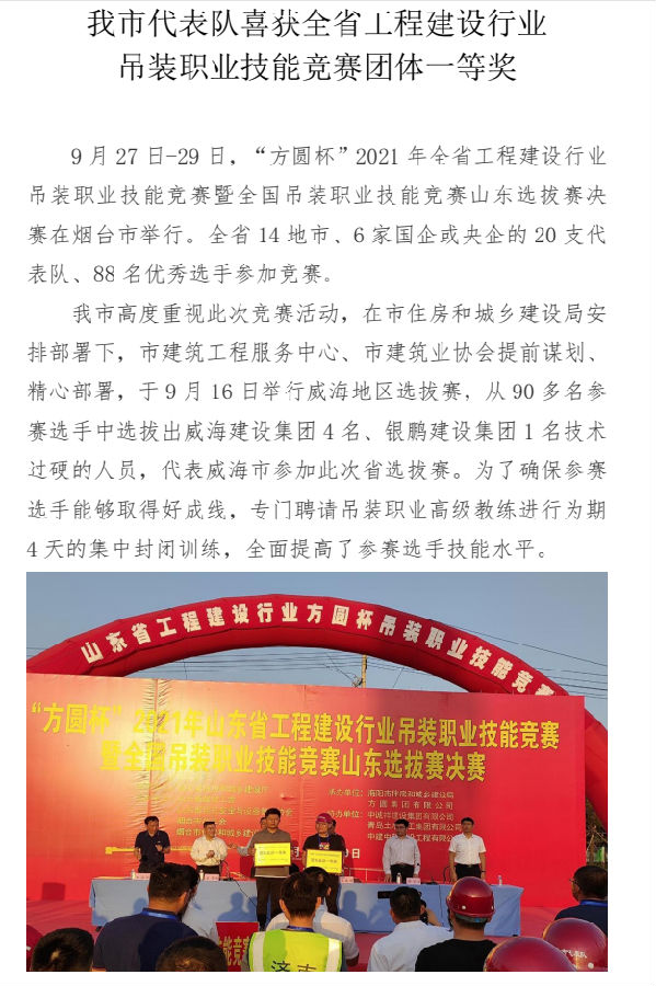 我市代表隊(duì)喜獲全省工程建設(shè)行業(yè) 吊裝職業(yè)技能競(jìng)賽團(tuán)體一等獎(jiǎng)