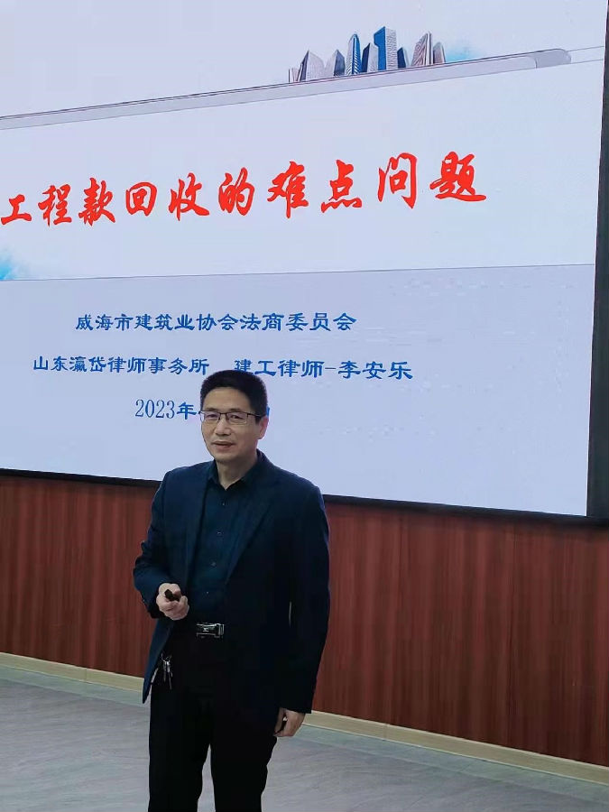 此次培訓(xùn)會意在幫助企業(yè)解決工程款回收過程中遇到的問題、企業(yè)在回收工程款時應(yīng)注意的事項、應(yīng)做好哪些準(zhǔn)備工作防范相應(yīng)法律風(fēng)險、指導(dǎo)企業(yè)聘用什么樣的律師有助于回收工程款。威海市建筑業(yè)協(xié)會李安樂律師對疫情對工程款回收的影響、合同關(guān)系與工程款回收、工程質(zhì)量與工程款回收、合同效力與工程款回收等12個方面進(jìn)行了詳細(xì)的講解
