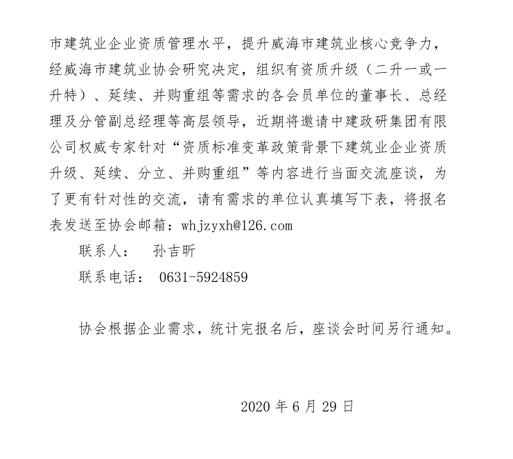 關(guān)于召開威海市建筑企業(yè)家交流座談會(huì)的預(yù)備通知