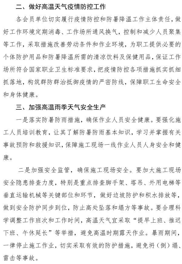 關(guān)于加強(qiáng)疫情防控常態(tài)化下 高溫雨季施工現(xiàn)場(chǎng)安全生產(chǎn)管理的倡議書(shū)