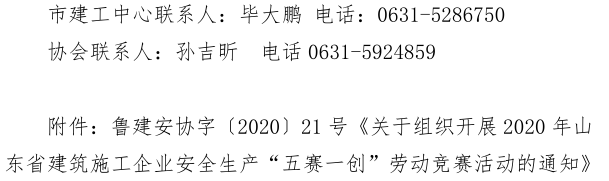 >關于轉發(fā)省建筑安全與設備管理協(xié)會 省建設工會《關于組織開展2020年山東省 建筑施工企業(yè)安全生產(chǎn)“五賽一創(chuàng)” 勞動競賽活動的通知》