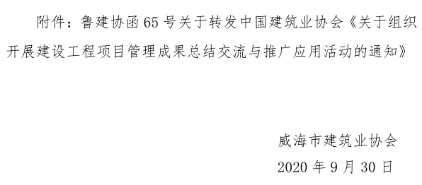 關(guān)于轉(zhuǎn)發(fā)山東省建筑業(yè)協(xié)會 《關(guān)于轉(zhuǎn)發(fā)中國建筑業(yè)協(xié)會<關(guān)于組織開展建設(shè)工程項目管理成果總結(jié)交流與推廣應(yīng)用 活動的通知>的通知》