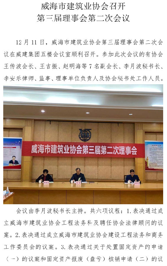 >威海市建筑業(yè)協(xié)會召開第三屆理事會第二次會議