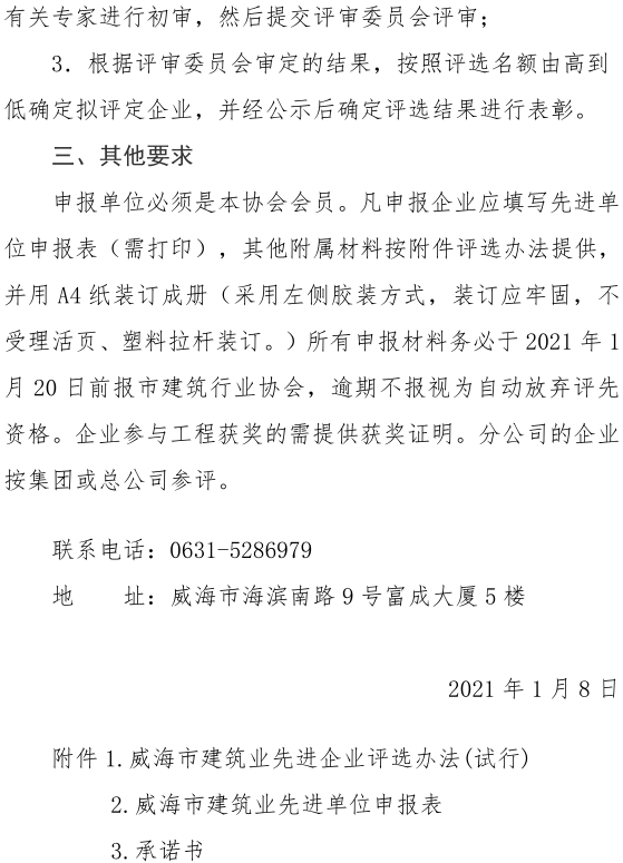 >威海市建筑業(yè)協(xié)會(huì)關(guān)于 評(píng)選2020年度建筑業(yè)先進(jìn)單位的通知