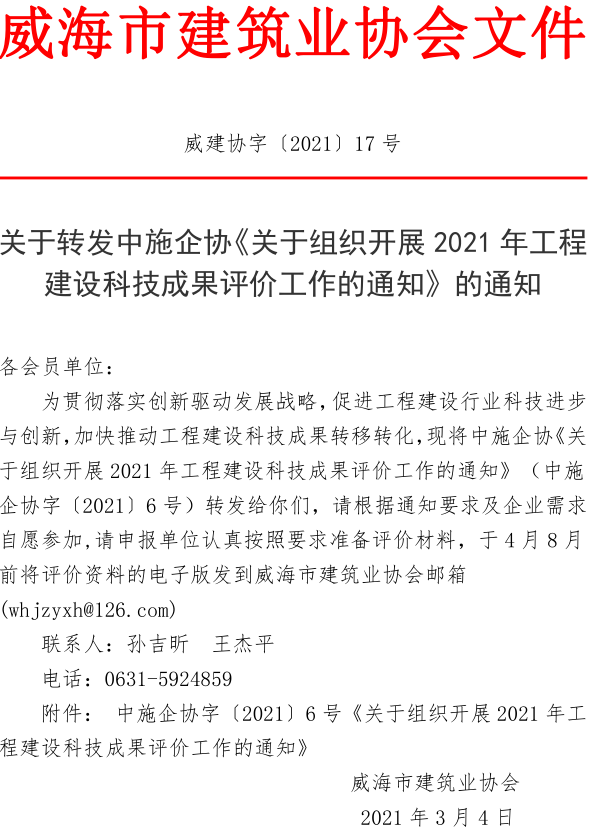 關于轉發(fā)中施企協(xié)《關于組織開展2021年工程建設科技成果評價工作的通知》的通知