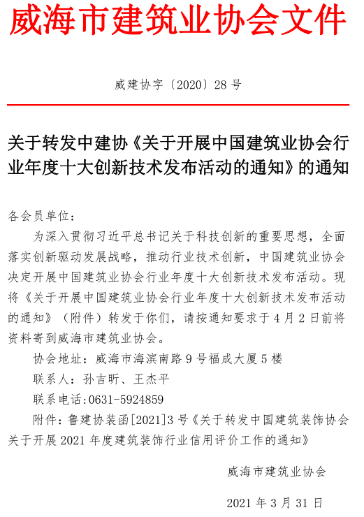 關(guān)于轉(zhuǎn)發(fā)中建協(xié)《關(guān)于開展中國建筑業(yè)協(xié)會行業(yè)年度十大創(chuàng)新技術(shù)發(fā)布活動的通知》的通知