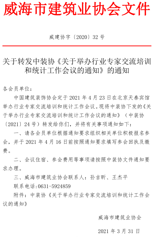 >關(guān)于轉(zhuǎn)發(fā)中裝協(xié)《關(guān)于舉辦行業(yè)專家交流培訓(xùn)和統(tǒng)計工作會議的通知》的通知