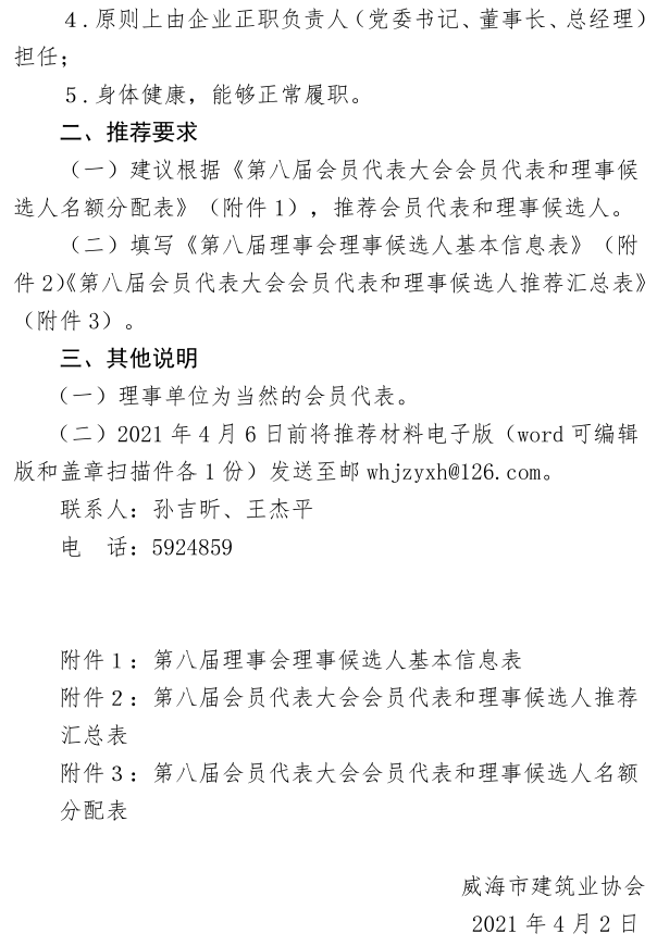 關(guān)于推薦第八屆會員代表大會 會員代表和理事候選人的通知