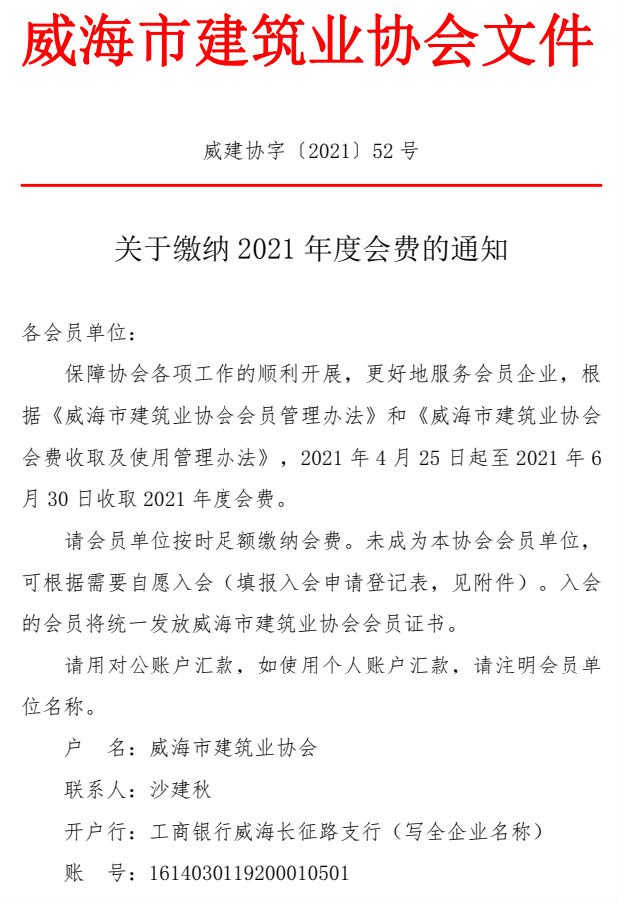 關于繳納2021年度會費的通知