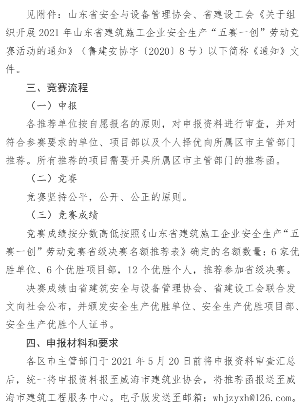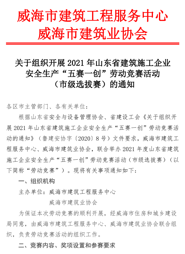 關(guān)于組織開(kāi)展2021年山東省建筑施工企業(yè) 安全生產(chǎn)“五賽一創(chuàng)”勞動(dòng)競(jìng)賽活動(dòng) (市級(jí)選拔賽)的通知