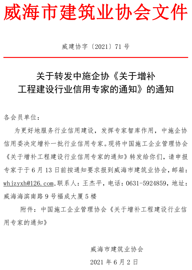 >關(guān)于轉(zhuǎn)發(fā)中施企協(xié)《關(guān)于增補(bǔ) 工程建設(shè)行業(yè)信用專家的通知》的通知