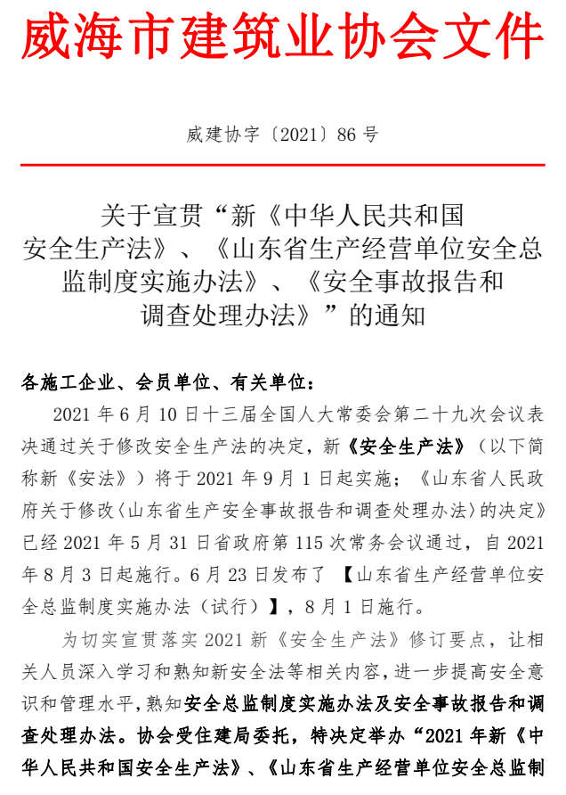 關(guān)于宣貫“新《中華人民共和國(guó) 安全生產(chǎn)法》、《山東省生產(chǎn)經(jīng)營(yíng)單位安全總監(jiān)制度實(shí)施辦法》、《安全事故報(bào)告和 調(diào)查處理辦法》”的通知