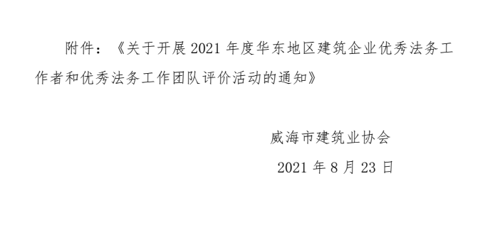 關于轉發(fā)省建筑業(yè)協(xié)會《關于開展2021年度華東地區(qū)建筑企業(yè)優(yōu)秀法務工作者和優(yōu)秀法務 工作團隊評價活動的通知》的通知