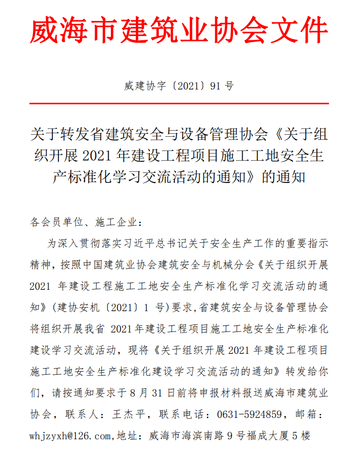 關(guān)于轉(zhuǎn)發(fā)省建筑安全與設(shè)備管理協(xié)會(huì)《關(guān)于組織開展2021年建設(shè)工程項(xiàng)目施工工地安全生產(chǎn)標(biāo)準(zhǔn)化學(xué)習(xí)交流活動(dòng)的通知》的通知