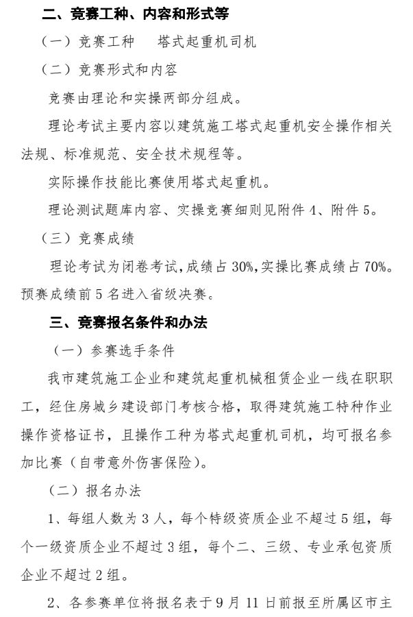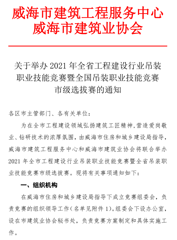 關(guān)于舉辦2021年全省工程建設(shè)行業(yè)吊裝 職業(yè)技能競賽暨全國吊裝職業(yè)技能競賽市級選拔賽的通知