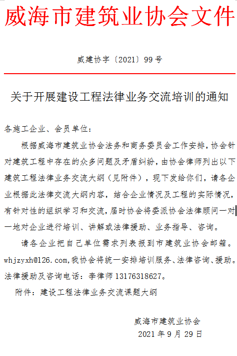 關于開展建設工程法律業(yè)務交流培訓的通知