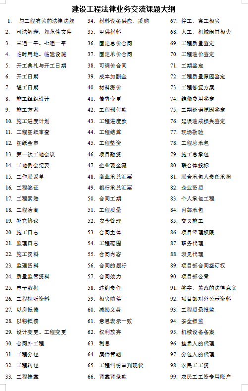 建設工程法律業(yè)務交流課題大綱.docx