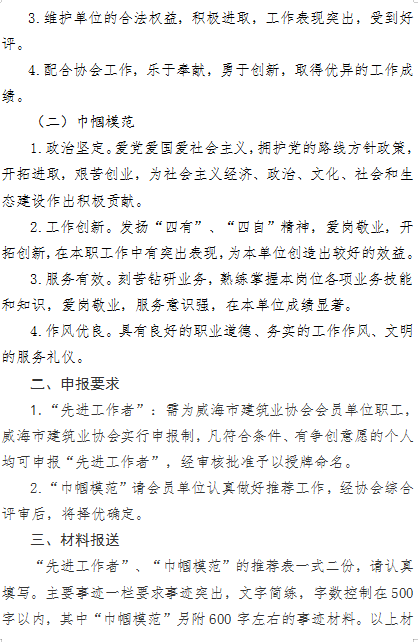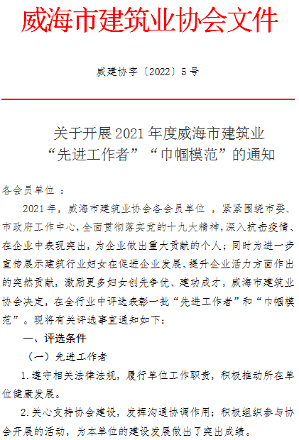 >關(guān)于開展2021年度威海市建筑業(yè)“先進工作者”“巾幗模范”的通知
