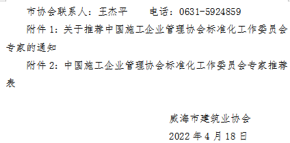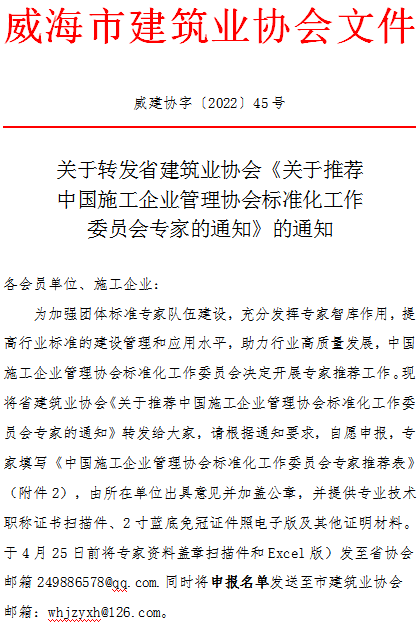 關(guān)于轉(zhuǎn)發(fā)省建筑業(yè)協(xié)會《關(guān)于推薦中國施工企業(yè)管理協(xié)會標(biāo)準(zhǔn)化工作委員會專家的通知》的通知