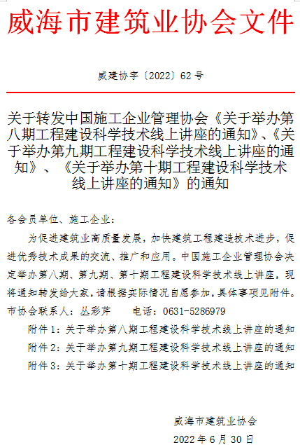關于轉發(fā)中國施工企業(yè)管理協(xié)會《關于舉辦第八期工程建設科學技術線上講座的通知》、《關于舉辦第九期工程建設科學技術線上講座的通知》、《關于舉辦第十期工程建設科學技術線上講座的通知》的通知