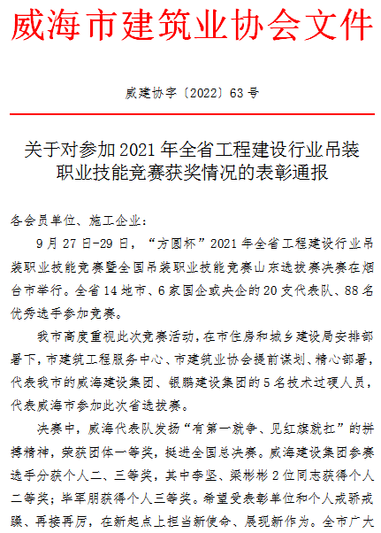 >關(guān)于對(duì)參加2021年全省工程建設(shè)行業(yè)吊裝職業(yè)技能競賽獲獎(jiǎng)情況的表彰通報(bào)