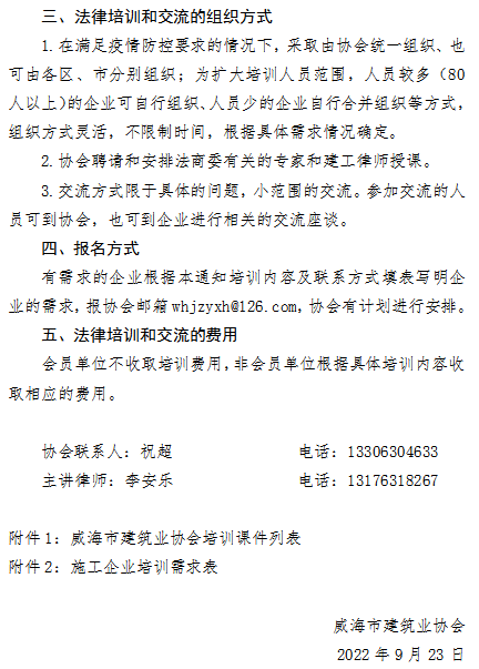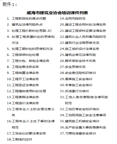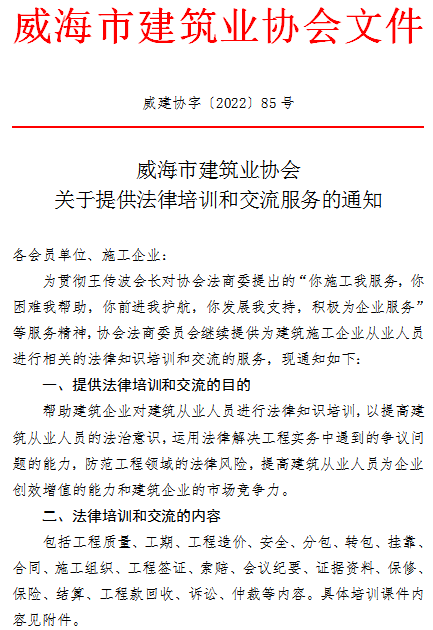 >威海市建筑業(yè)協(xié)會(huì)關(guān)于提供法律培訓(xùn)和交流服務(wù)的通知