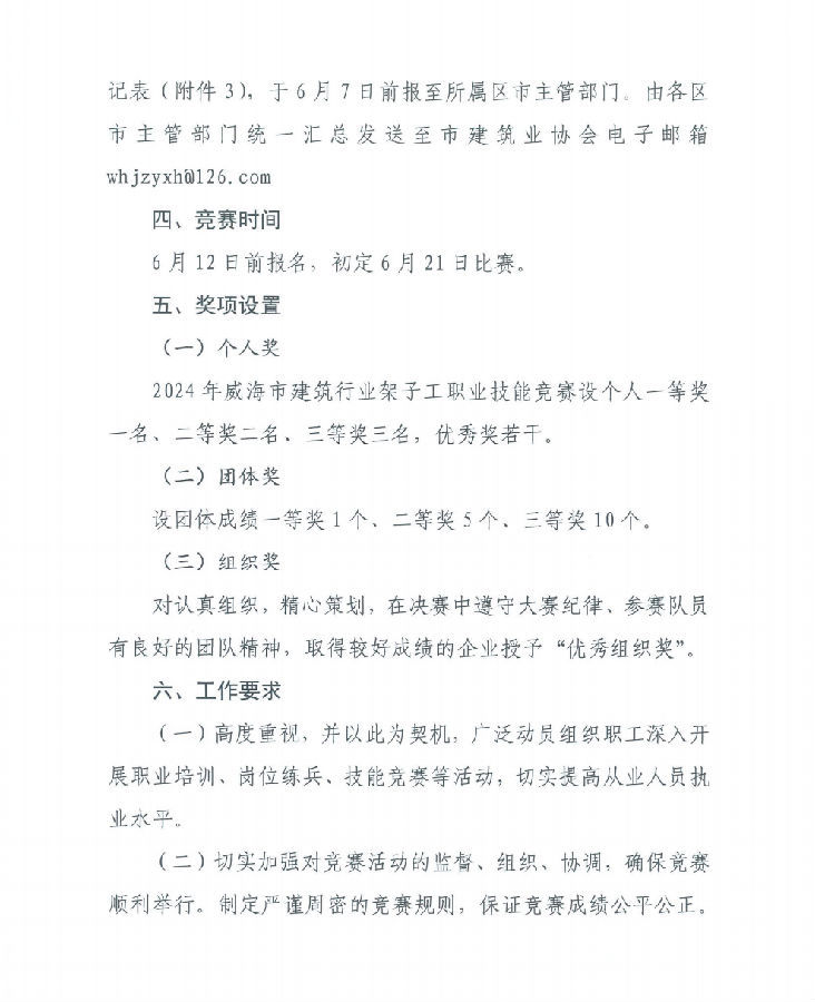 >關(guān)于舉辦2024年度威海市建筑架子工職業(yè)技能競(jìng)賽的通知