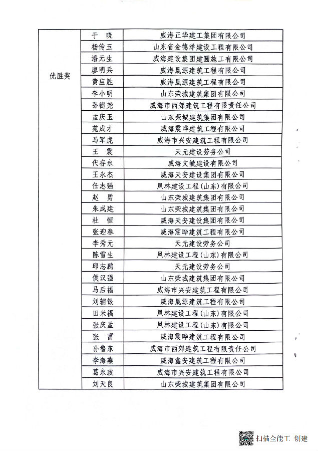 關(guān)于公布2024年度威海市建筑架子工職業(yè)技能競(jìng)賽成績(jī)的通報(bào)