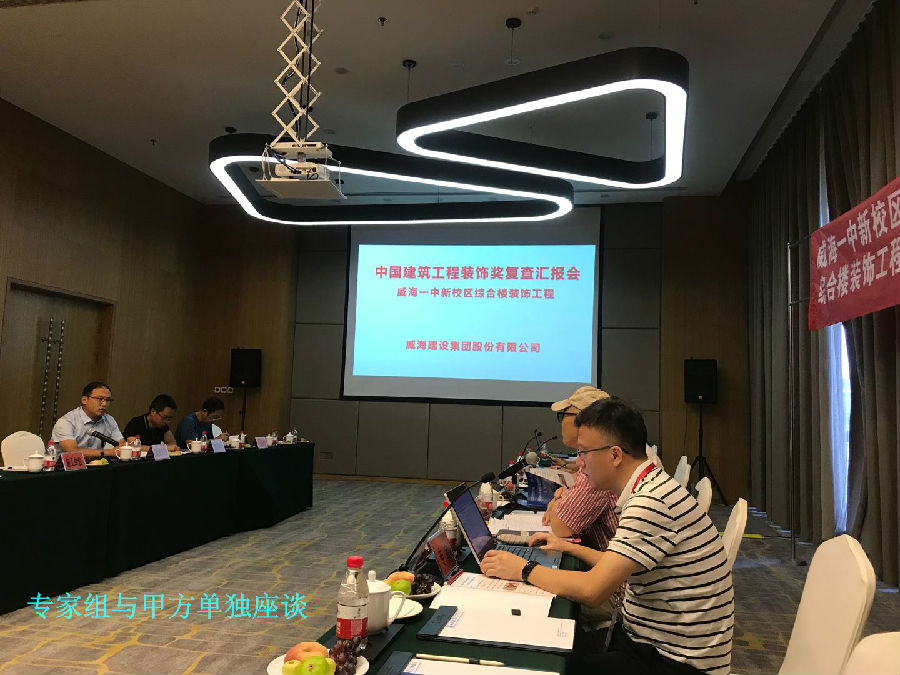 2019年8月30日--9月2日,中國建筑工程裝飾獎復(fù)查組專家張楊等一行4人對威海建設(shè)集團(tuán)股份有限公司承建的威海一中新校區(qū)綜合樓裝飾工程、江蘇南通三建建筑裝飾有限公司承建的威海綠軸一期文化活動中心裝飾工程、山東奧納建筑裝飾工程有限公司承建的煙臺銀行威海分行室內(nèi)裝飾工程、深圳市華南裝飾集團(tuán)股份有限公司承建的威海市中心醫(yī)院病房大樓擴(kuò)建工程主樓、附樓裝飾裝修工程、山東海瑞林裝飾工程有限公司承建的榮成九龍城休閑購物廣場2#酒店、11#時尚餐廳精裝飾裝修工程進(jìn)行了為期4天的復(fù)查工作。