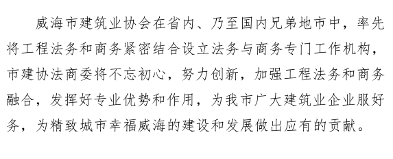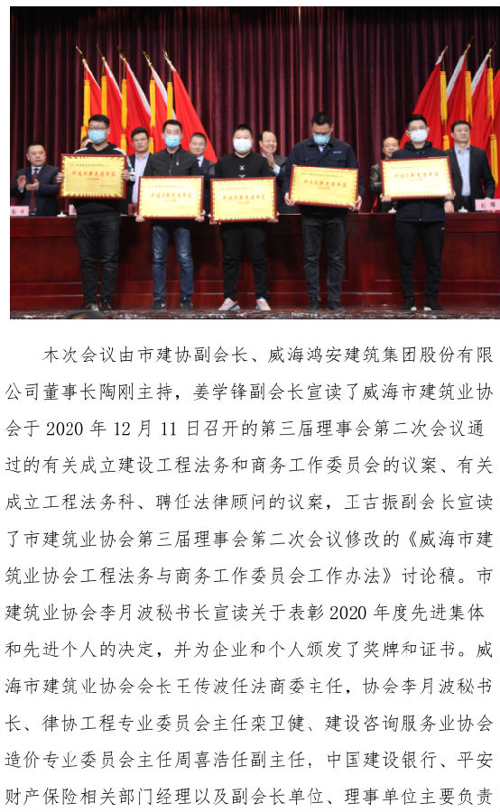 >威海市建筑業(yè)協(xié)會(huì)召開法務(wù)商委委員會(huì) 成立會(huì)議暨2020年度總結(jié)表彰大會(huì)