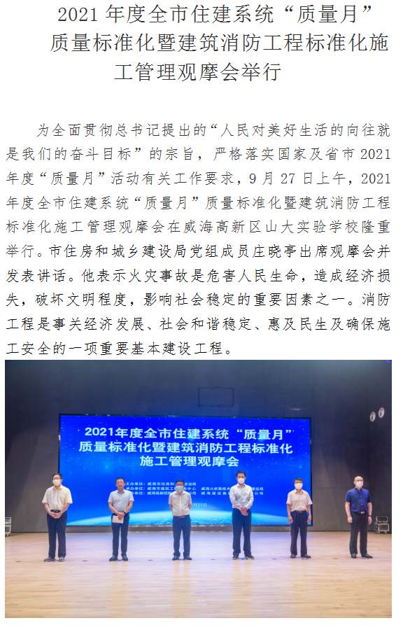 >2021年度全市住建系統(tǒng)“質(zhì)量月” 質(zhì)量標(biāo)準(zhǔn)化暨建筑消防工程標(biāo)準(zhǔn)化施工管理觀摩會舉行