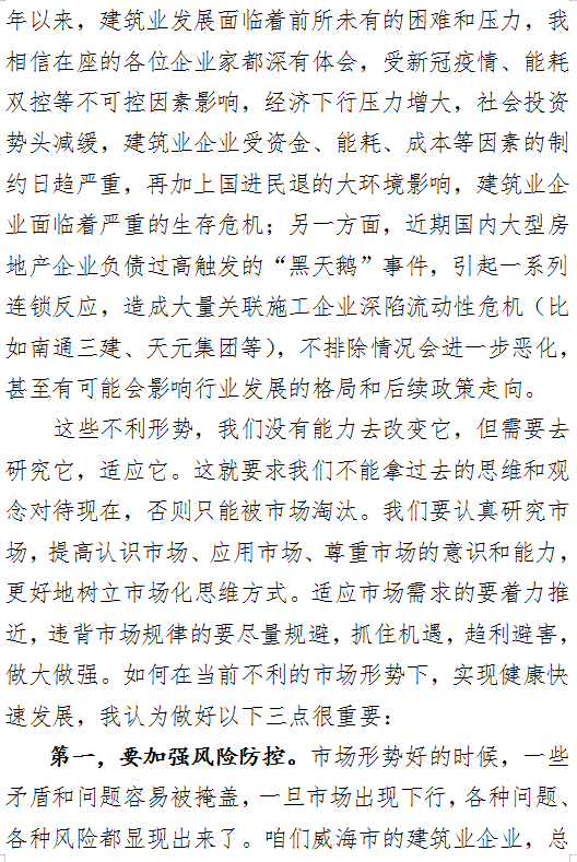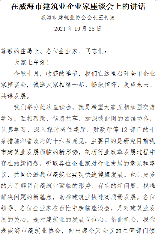 >建筑業(yè)協(xié)會(huì)企業(yè)家座談會(huì)王傳波會(huì)長(zhǎng)講話(huà)