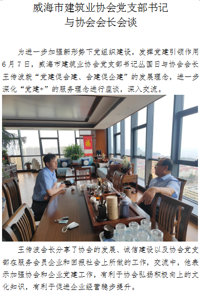 >威海市建筑業(yè)協(xié)會(huì)黨支部書(shū)記與協(xié)會(huì)會(huì)長(zhǎng)會(huì)談