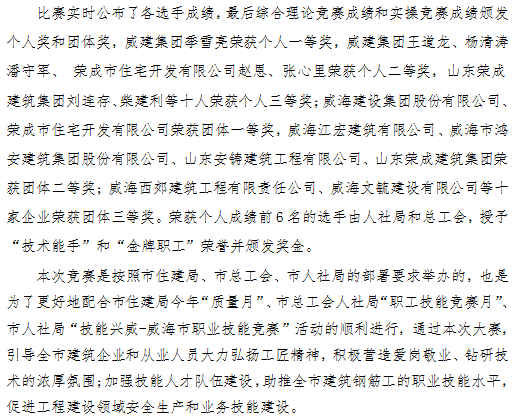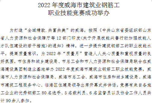 >2022年度威海市建筑業(yè)鋼筋工職業(yè)技能競(jìng)賽成功舉辦